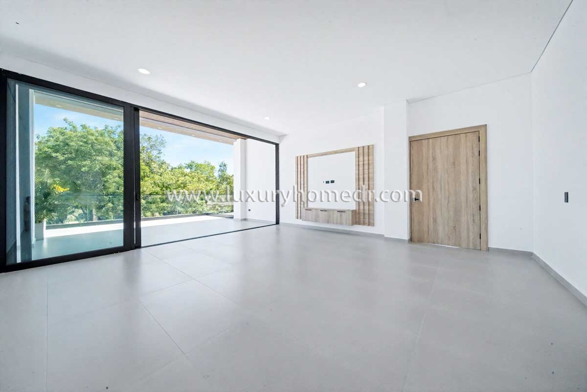 This villa offers 4 large bedrooms, each with a private bathroom, built-in closet, desk, and TV area. The master suite is a private oasis, featuring a spacious walk-in closet, elegant bathroom, and a private terrace overlooking the pool and surrounding forest. The semi-covered terrace feels like a natural extension of the bedroom, with WPC ceilings and integrated lighting that create a serene ambiance.