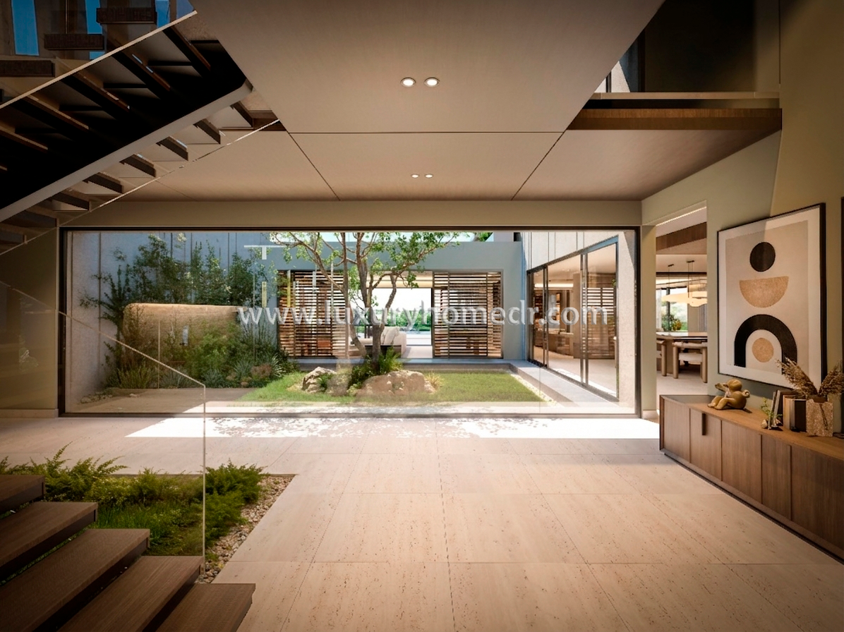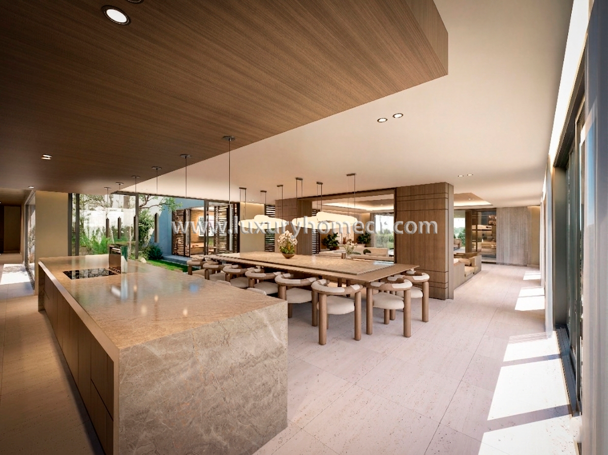 The ground level connects social areas seamlessly. Living, dining, and outdoor terraces flow together. Dual kitchens allow both hosting and service efficiency. Guest suites are private and independent.